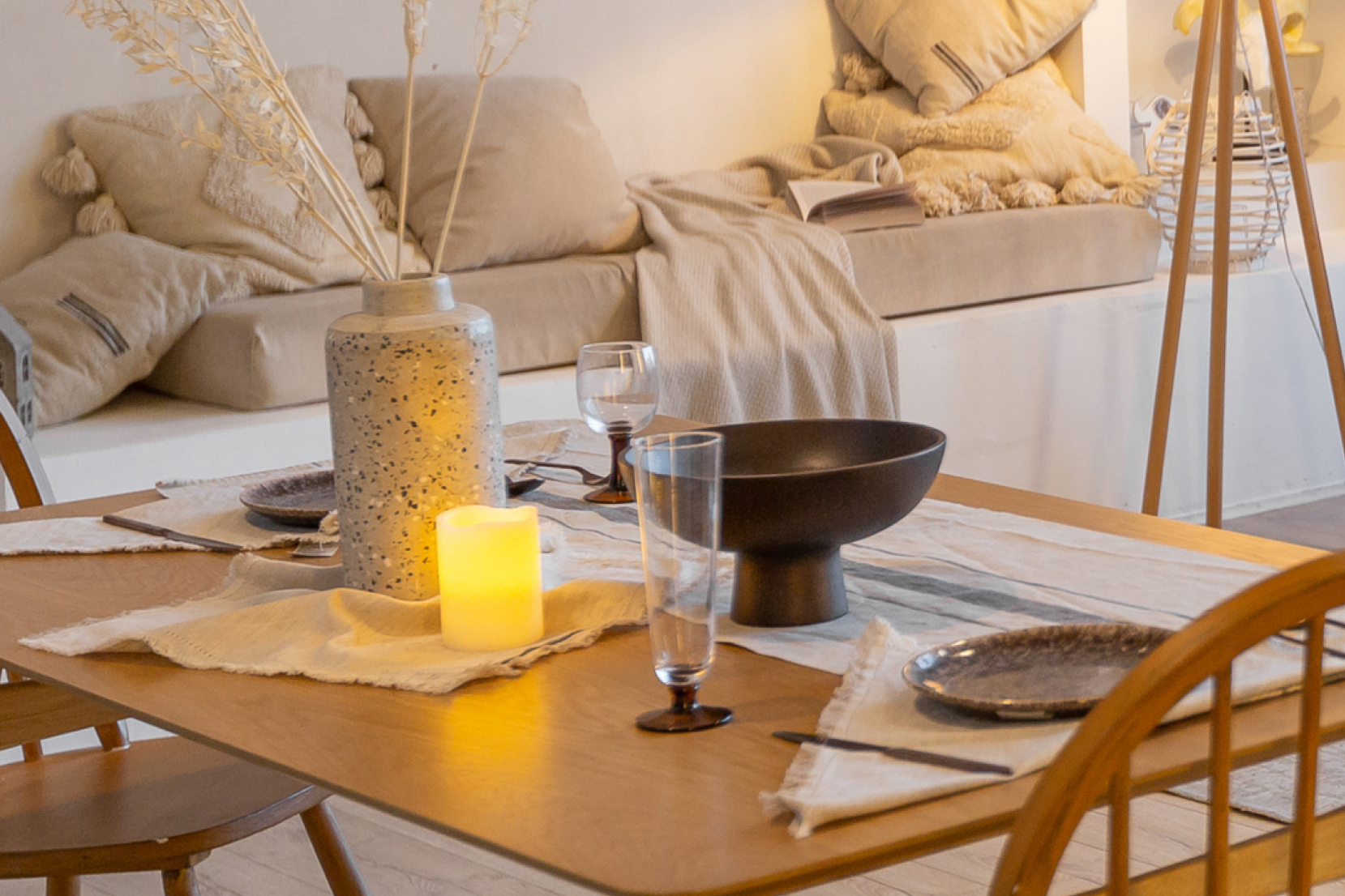 § Теплые светильники и гирлянды. Мягкое освещение играет важную роль в создании уютной атмосферы. Выбирайте светильники с теплым светом и добавьте гирлянды.